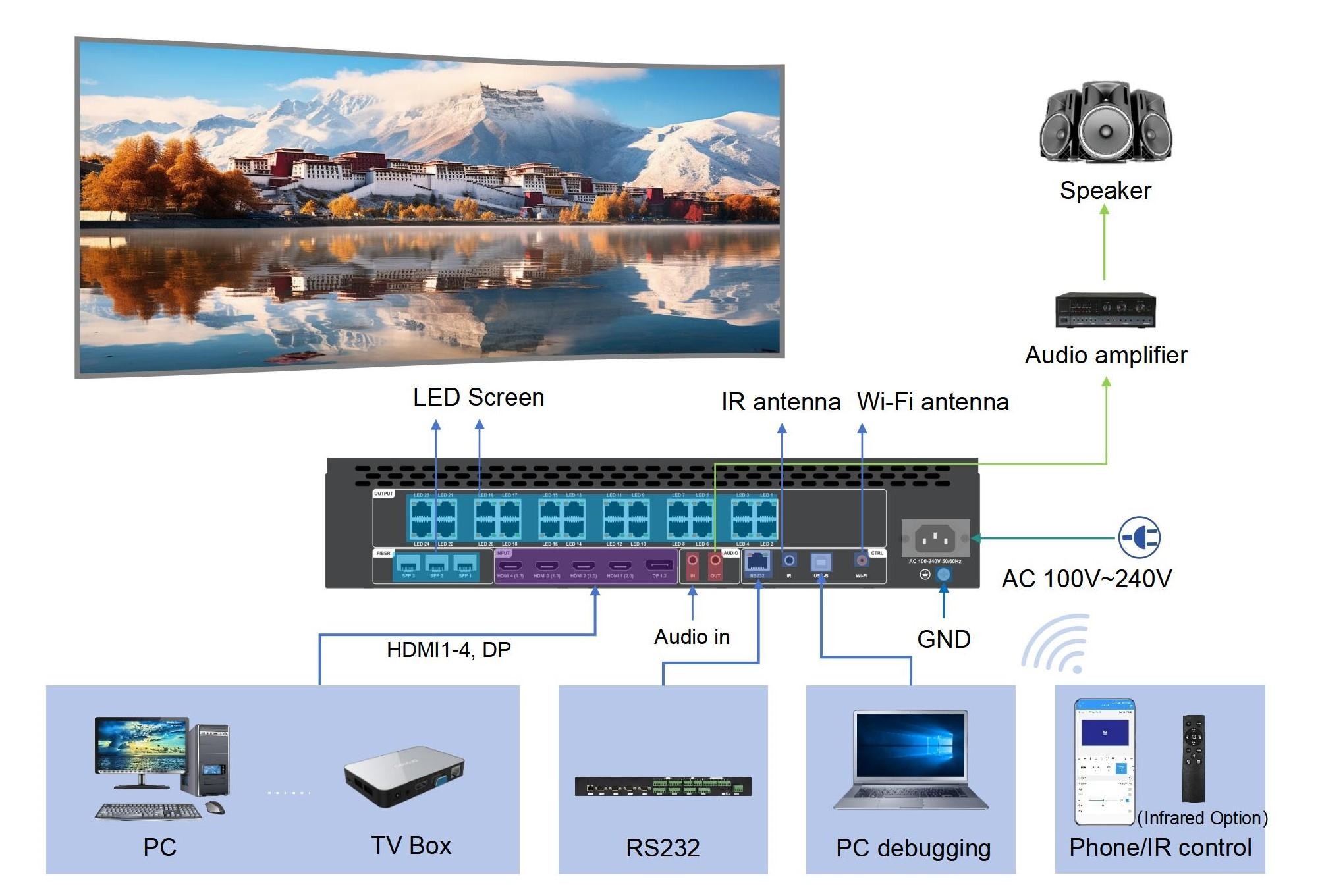 Ngoài ra, thiết bị hỗ trợ hiển thị điểm-đến-điểm (point-to-point) giúp màn hình LED hiển thị hình ảnh rõ nét hơn.