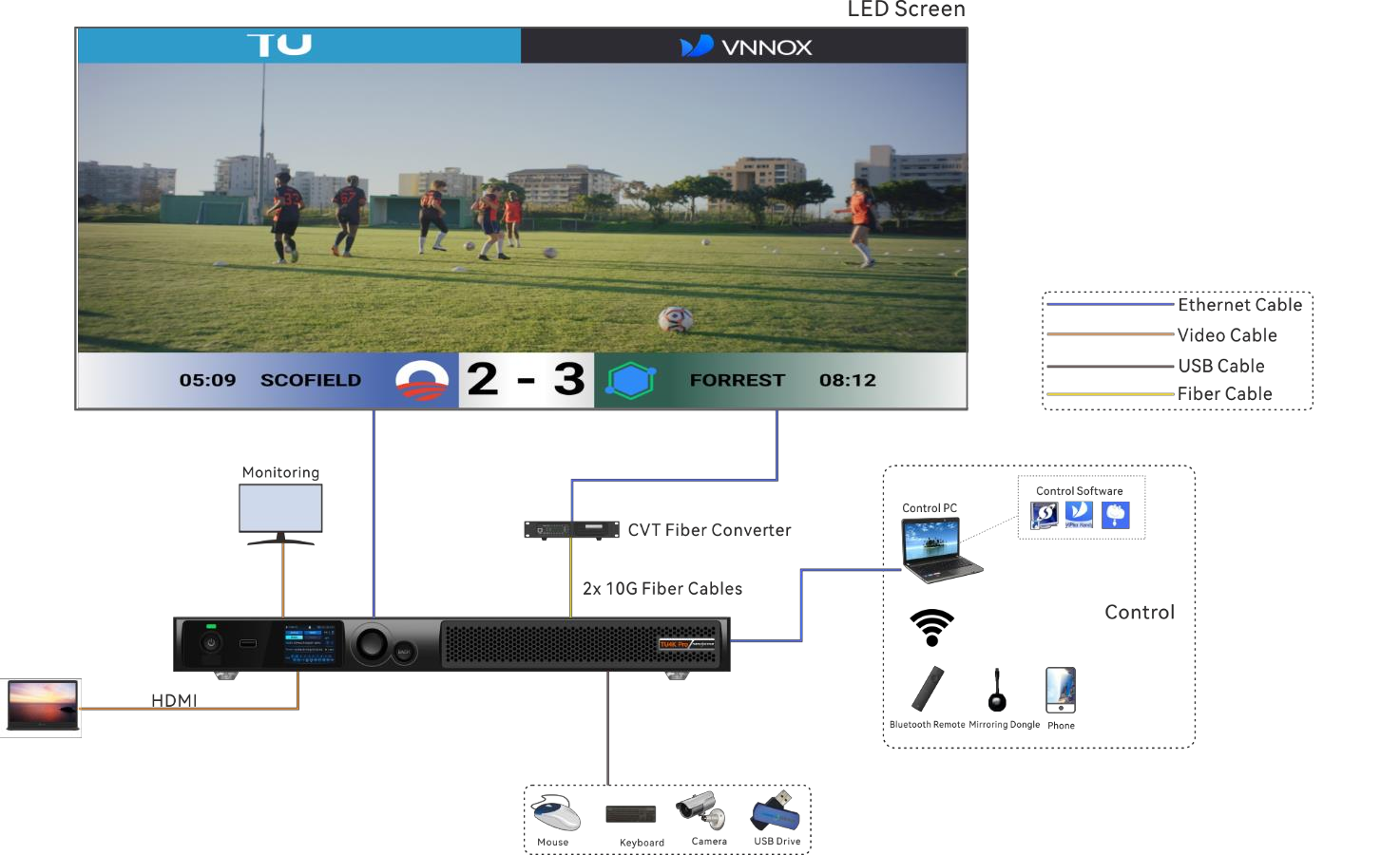 Thiết bị tích hợp hệ điều hành Android, card gửi (sending card) và xử lý video trong một khối duy nhất, cho phép chạy các ứng dụng của bên thứ ba.