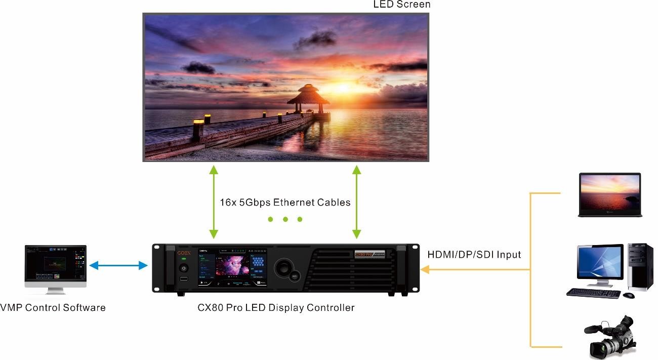 Novastar CX80 Pro là bộ xử lý hình ảnh 8K hỗ trợ tải tối đa: 35.389.440 pixel. Thiết bị sở hữu nhiều giao diện đầu vào video (HDMI 2.1, HDMI 2.0, DP 1.4, 12G-SDI) và hỗ trợ cổng mạng 5Gbps, quản lý màn hình led ở khoảng cách xa qua tín hiệu của cổng quang 40Gbps.